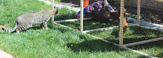 The chickens are huge and hopefully we will be seeing pellets (small eggs and I probably spelled it wrong) soon. One thing about chickens that just never crossed my mind is how much they poop! Seriously it is ridiculous and anyone who knows me knows that I can't have things messy or unorganized, let alone pooped on, ugh. Thor built a coop and it's better than either of us thought it would be! Paint and some siding and the coop will be ready for its Three Ring Life debut! During the day I let the girls, AKA our chickens, out to run and they always end up crusing around on our back patio, porch (what the hell is the difference by the way?) and they go near my beautiful picnic table and next thing I know is that I am chasing chickens away, just me and my dish towel that sits on my shoulder 99% of the time I am home. I kind of wish someone had a camera because I'm sure it is a sight worth giggling at! Anyhow so there was poop everywhere and Thor stayed home from wrestling practice to watch the kids while I went to work and somehow managed to pressure wash the back, front and sides of our house and the chicken coop AND mow the lawn! Hot damn! That man is awesome and that folks is why I married him, he knows how to multi task! :-) plus his multi tasking abilities keeps me from having a breakdown about chicken poop on our porch, patio, whatever.